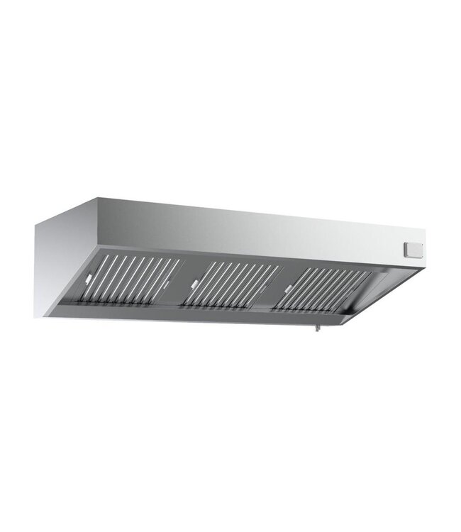 Dit schuine model RVS afzuigkap met motor zuigt 1800 m³ lucht per uur weg, houdt uw keuken rook- en geurvrij. Direct klaar voor gebruik, afzuiging standaard stekkerklaar op 230V. Praktische en intuïtieve handmatige bediening met knoppen. Corrosiebestendig, eenvoudig schoon te maken. Geschikt voor de intensieve belasting van een professionele keuken. De ledlamp zorgt voor helder licht - energiezuinig en duurzaam. Alles in één: Horeca afzuigkap inclusief motor, verlichting en vier lamellenfilters.