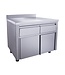 RVS Kast met schuifdeuren en twee lades volledig gemaakt van RVS. Perfect voor het opbergen van keukengerei en gereedschappen in de professionele keuken. Voorzien van in hoogte verstelbare poten voor de optimale werkhoogte.