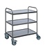 RVS Serveerwagen SWK 3 met 3 planken en 4 wielen, ideaal voor het vervoeren van keukengerei en borden in de professionele keuken. Deze serveer trolley heeft een maximaal draagvermogen van 150 kg waarmee het geschikt is voor intensief dagelijks gebruik. In beide planken heeft de wagen een waterkering die voorkomt dat water van de kar loopt. Wordt geleverd in een platte 'flat-pack' verpakking, heel makkelijk zelf te monteren.