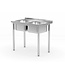 Spoeltafel met twee spoelbakken volledig van duurzaam roestvrijstaal (AISI 304) geschikt voor elke spoelkeuken in de horeca. De voeten zijn tussen -5 mm en +25 mm in hoogte verstelbaar om de spoeltafel waterpas te kunnen plaatsen. Uitgevoerd met kraangat van ø30mm en een achteropstand van 40mm hoog. De spoelbakken hebben beide afmetingen van 400 mm breed, 400 mm diep en 250 mm hoog. Wordt gedemonteerd geleverd en is eenvoudig in elkaar te zetten.