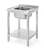 RVS Spoeltafel met onderplank voor de professionele keuken met een stevige constructie. Flat-pack model makkelijk zelf te monteren. Compleet met spoelbak, onderplank, spatrand, waterkering en afvoergat. De spatrand beschermd de muur tegen opspattend water. Dankzij de waterkering voorkomt u dat het water van het werkblad af loopt. De achterpoten van de tafel zijn 50 mm van de muur verwijderd voor een makkelijkere installatie. In hoogte verstelbaar voor de perfecte werkhoogte.