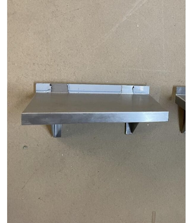 Kleine RVS wandplanken met twee ophangbeugels. De planken hebben een volledig gelaste constructie en beschikken over een opstaande rand aan de achterzijde. Per 2 stuks te bestellen.