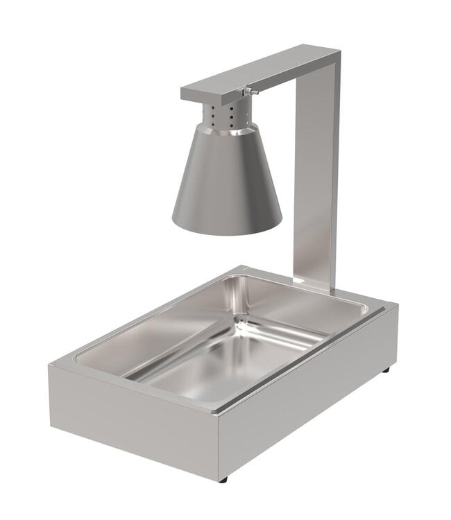 Professionele horeca warmhoudlamp met 1 lamp ontworpen om gerechten op serveertemperatuur te houden, zonder ze verder te verhitten. De stevige RVS constructie maakt dit model geschikt voor intensief dagelijks gebruik in restaurants, cafetaria’s, foodtrucks en hotels. Dit model is heel gemakkelijk te demonteren en op te bergen voor vervoer. Compleet inclusief 1/1GN bak van 100 mm diep - direct klaar voor gebruik.
