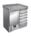 Pizzawerkbank met 1 deur en 6 lades uitgerust met een granieten werkblad.Â