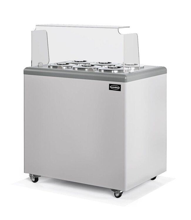 Ontdek de witte schepijsvitrine Zanzibar 6 van Combisteel! Deze statisch gekoelde vitrine biedt ruimte voor 6 ronde ijsbakken van 7 liter waarmee u ijs kunt presenteren en bewaren. Uw ijs word gelijkmatig gekoeld binnen een temperatuurbereik van -20 en -10 graden. Deze schepijsvitrine is geschikt voor ronde ijsbakken met RVS deksels - beperkt koudeverlies en is hygiënisch in gebruik. Onderin deze ijsvitrine is er nog opslagruimte voor nog eens 4 ijsbakken zodat u voldoende voorraad heeft.