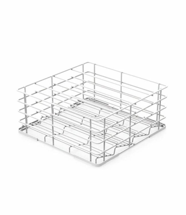 Schuine glazenkorf met 4 rijen. Geschikt voor horeca vaatwassers waar vaatwaskorven van 50x50 centimeter in kunnen. Ideaal om bijvoorbeeld wijnglazen of kopjes in te plaatsen, dankzij de schuine bodem staan de glazen stabiel en blijft er minder water op de onderkant van de glazen staan.