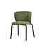 Stijlvolle eetkamer stoel met gestoffeerde zitting in het groen. Sfeervol design - ideaal voor restaurants, bars, hotel lobby's en andere horeca gelegenheden. De zitting is bekleed met comfortabel stof voor een luxe uitstraling. Uitgevoerd met een stevig stalen frame. De stoelen zijn stapelbaar waarmee ze compact en ruimtebesparend kunnen worden opgeborgen.