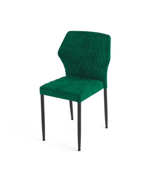Stijlvolle eetkamer stoel met velours zitting in groene kleur. Sfeervol design ideaal voor restaurants, bars, hotel lobby's en andere horeca gelegenheden. De zitting is bekleed met comfortabel velours en geruit stiksel voor een luxe uitstraling. Uitgevoerd met een stevig stalen frame. De stoelen zijn stapelbaar waarmee ze compact en ruimtebesparend kunnen worden opgeborgen.