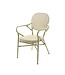 Bistro Terrasstoel met armleuningen en rotan zitting in het wit met zwart. Perfect op het terras - ideaal voor restaurants, bars en andere horeca gelegenheden. De zitting is bekleed met comfortabel rotan. Uitgevoerd met een stevig aluminium frame. De stoelen zijn stapelbaar waarmee ze compact en ruimtebesparend kunnen worden opgeborgen.