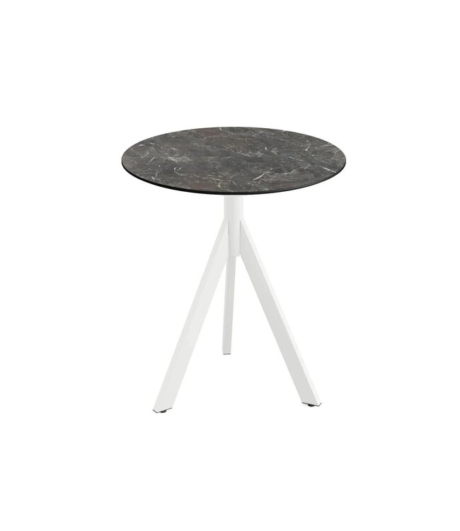 Infinity Tripod Terrastafel met wit drieteens onderstel en een rond tafelblad gemaakt van HPL (High Pressure Laminate). Ronde horeca tafel met een Galaxy Marble marmerlook tafelblad geschikt voor moderne restaurants en gezellige terrassen. Na gebruik klapt u de Infinity Tripod tafel weer eenvoudig in. Ruimtebesparend wanneer u de tafel niet meer gebruikt. Deze inklapbare tafel is ook beschikbaar met frame in het zwart of zandkleur/beige, een tafelblad met houtlook of marmerlook. Mix & match de tafels zodat ze aansluiten op uw interieur. Word gedemonteerd geleverd en is eenvoudig in elkaar te zetten.