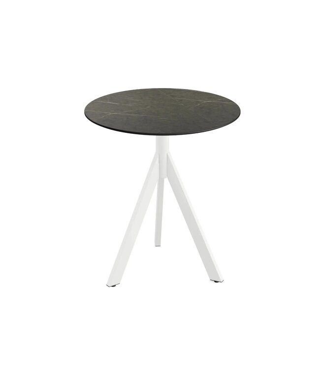 Infinity Tripod Terrastafel met wit drieteens onderstel en een rond tafelblad gemaakt van HPL (High Pressure Laminate). Ronde horeca tafel met een Midnight Marble marmerlook tafelblad geschikt voor moderne restaurants en gezellige terrassen. Na gebruik klapt u de Infinity Tripod tafel weer eenvoudig in. Ruimtebesparend wanneer u de tafel niet meer gebruikt. Deze inklapbare tafel is ook beschikbaar met frame in het zwart of zandkleur/beige, een tafelblad met houtlook of marmerlook. Mix & match de tafels zodat ze aansluiten op uw interieur. Word gedemonteerd geleverd en is eenvoudig in elkaar te zetten.