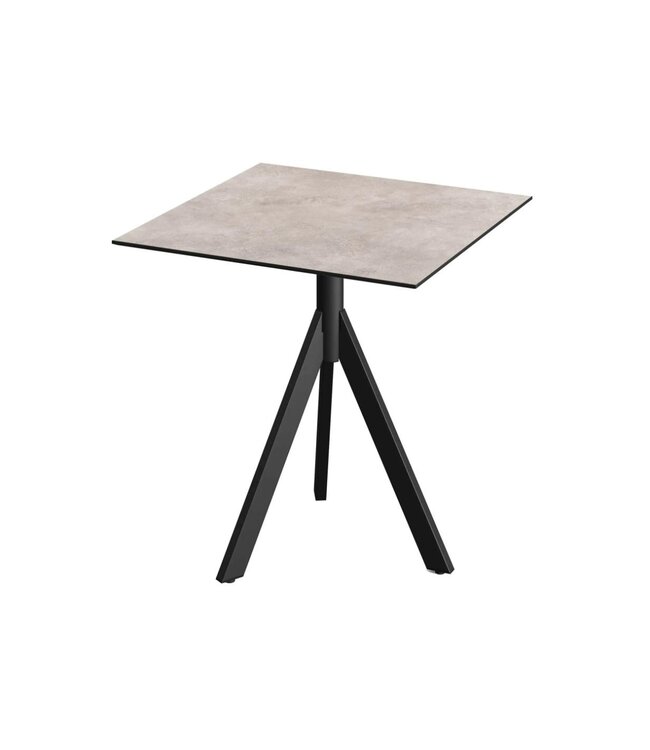 Infinity Tripod Terrastafel met zwart drieteens onderstel en een vierkant tafelblad gemaakt van HPL (High Pressure Laminate). Vierkante horeca tafel met een Moonstone marmerlook tafelblad geschikt voor moderne restaurants en gezellige terrassen. Na gebruik klapt u de Infinity Tripod tafel weer eenvoudig in. Ruimtebesparend wanneer u de tafel niet meer gebruikt. Deze inklapbare tafel is ook beschikbaar met frame in het wit of zandkleur/beige, een tafelblad met houtlook of marmerlook. Mix & match de tafels zodat ze aansluiten op uw interieur. Word gedemonteerd geleverd en is eenvoudig in elkaar te zetten.
