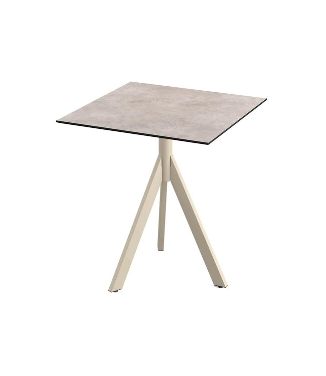Infinity Tripod Terrastafel met beige drieteens onderstel en een vierkant tafelblad gemaakt van HPL (High Pressure Laminate). Vierkante horeca tafel met een Moonstone marmerlook tafelblad geschikt voor moderne restaurants en gezellige terrassen. Na gebruik klapt u de Infinity Tripod tafel weer eenvoudig in. Ruimtebesparend wanneer u de tafel niet meer gebruikt. Deze inklapbare tafel is ook beschikbaar met frame in het wit of zwart, een tafelblad met houtlook of marmerlook. Mix & match de tafels zodat ze aansluiten op uw interieur. Word gedemonteerd geleverd en is eenvoudig in elkaar te zetten.