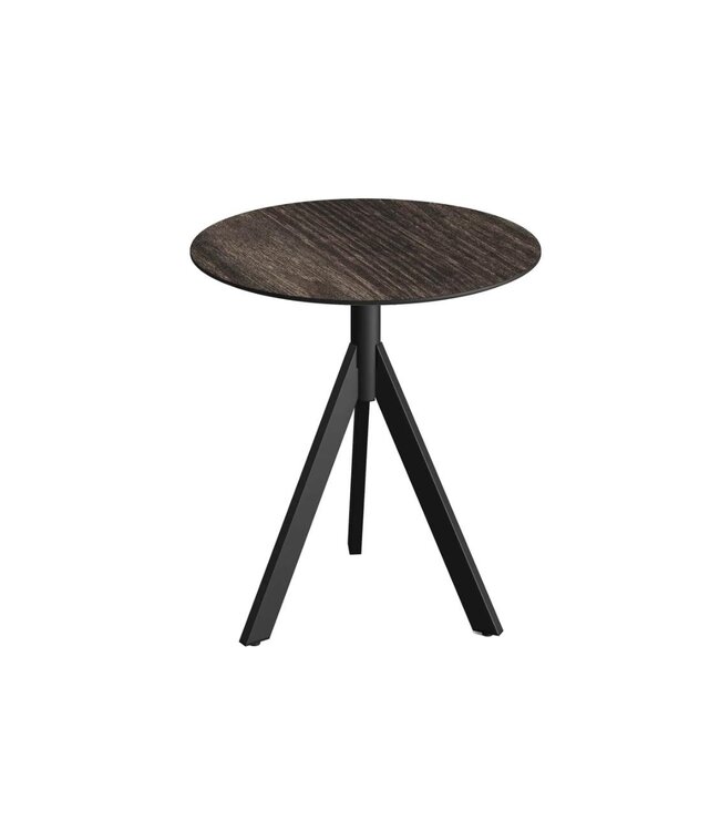 Infinity Tripod Terrastafel met zwart drieteens onderstel en een rond tafelblad gemaakt van HPL (High Pressure Laminate). Ronde horeca tafel met een Riverwashed Wood houtlook tafelblad geschikt voor moderne restaurants en gezellige terrassen. Na gebruik klapt u de Infinity Tripod tafel weer eenvoudig in. Ruimtebesparend wanneer u de tafel niet meer gebruikt. Deze inklapbare tafel is ook beschikbaar met frame in het wit of zandkleur/beige, een tafelblad met houtlook of marmerlook. Mix & match de tafels zodat ze aansluiten op uw interieur. Word gedemonteerd geleverd en is eenvoudig in elkaar te zetten.