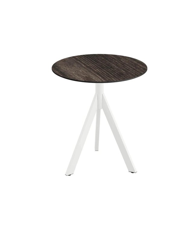 Infinity Tripod Terrastafel met wit drieteens onderstel en een rond tafelblad gemaakt van HPL (High Pressure Laminate). Ronde horeca tafel met een Riverwashed Wood houtlook tafelblad geschikt voor moderne restaurants en gezellige terrassen. Na gebruik klapt u de Infinity Tripod tafel weer eenvoudig in. Ruimtebesparend wanneer u de tafel niet meer gebruikt. Deze inklapbare tafel is ook beschikbaar met frame in het zwart of zandkleur/beige, een tafelblad met houtlook of marmerlook. Mix & match de tafels zodat ze aansluiten op uw interieur. Word gedemonteerd geleverd en is eenvoudig in elkaar te zetten.