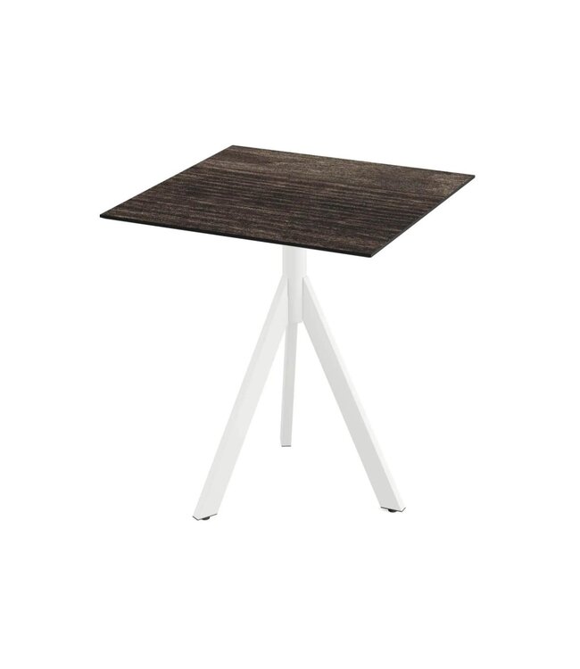 Infinity Tripod Terrastafel met wit drieteens onderstel en een vierkant tafelblad gemaakt van HPL (High Pressure Laminate). Vierkante horeca tafel met een Riverwashed Wood houtlook tafelblad geschikt voor moderne restaurants en gezellige terrassen. Na gebruik klapt u de Infinity Tripod tafel weer eenvoudig in. Ruimtebesparend wanneer u de tafel niet meer gebruikt. Deze inklapbare tafel is ook beschikbaar met frame in het zwart of zandkleur/beige, een tafelblad met houtlook of marmerlook. Mix & match de tafels zodat ze aansluiten op uw interieur. Word gedemonteerd geleverd en is eenvoudig in elkaar te zetten.