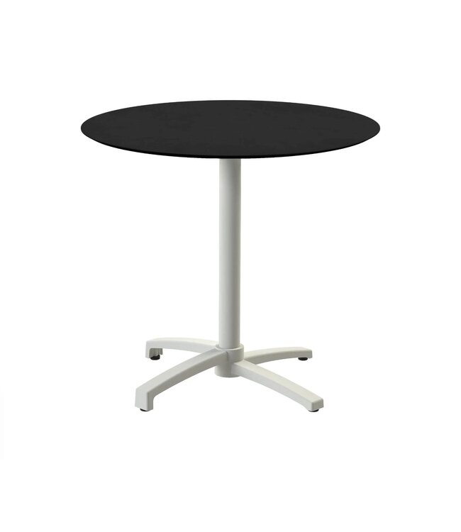 X Cross Terrastafel met beige frame en een rond tafelblad gemaakt van HPL (High Pressure Laminate). Ronde horeca tafel met een zwart tafelblad geschikt voor moderne restaurants en gezellige terrassen. Na gebruik klapt u de X Cross tafel weer eenvoudig in. Ruimtebesparend wanneer u de tafel niet meer gebruikt. Deze inklapbare tafel is ook beschikbaar met frame in zandkleur/beige, een tafelblad met houtlook of marmerlook. Mix & match de tafels zodat ze aansluiten op uw interieur. Word gedemonteerd geleverd en is eenvoudig in elkaar te zetten.