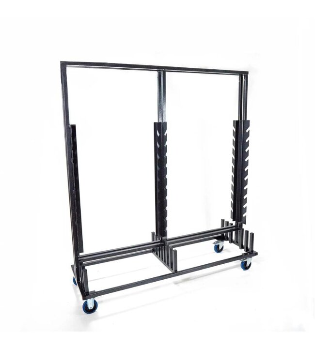 Deze trolley is een transportkar voor het vervoer en opslag van garderoberekken. De trolley biedt plaats aan maximaal 10 grote garderobe sets.