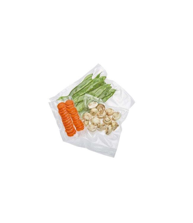 Grote vacuümzakken geschikt voor het vacumeren en sealen van voedsel met de Provac 360 vacumeermachine. 100 Stevige en scheurvaste zakken van 280 x 360 mm. Voedselveilig en BPA-vrij geschikt om vacuüm te marineren. Geschikt voor sous vide en bain-marie.