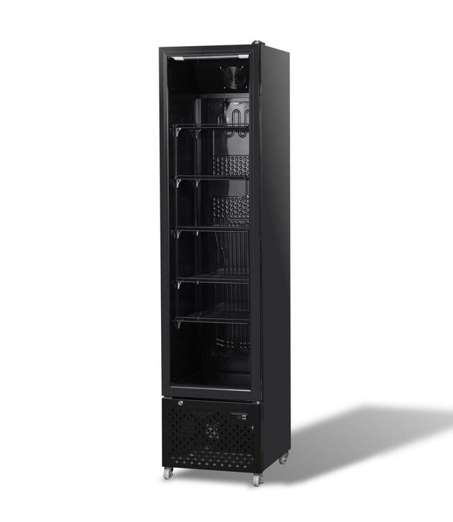 Het statische koelsysteem levert een stabiele temperatuur overal in de koeling. De ingebouwde ledverlichting zorgt voor een heldere presentatie, terwijl de glazen deur goed zicht geeft op de inhoud. Beschikt over een inhoud van 208 liter en biedt daarmee volop ruimte voor grotere voorraden. De zelfsluitende deur beperkt energieverlies en draagt bij aan een efficiënte werking.