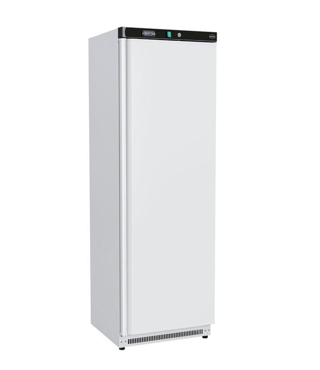 Professionele vrieskast met witte stalen behuizing voor een compacte opslag in de horeca. Met een netto inhoud van 304 liter bewaart u ingrediënten en voorbereid voedsel overzichtelijk en binnen handbereik. Uitgerust met een statische koeling waarmee producten op de juiste temperatuur gekoeld worden. Word geleverd met 6 roosters zodat u uw voorraad naar wens kunt inrichten. Deze staande vrieskast heeft een temperatuurbereik van -25 tot -18 graden. Standaard is de deur rechts scharnierend. Dit model is ook verkrijgbaar uitgevoerd met een sterke RVS behuizing.