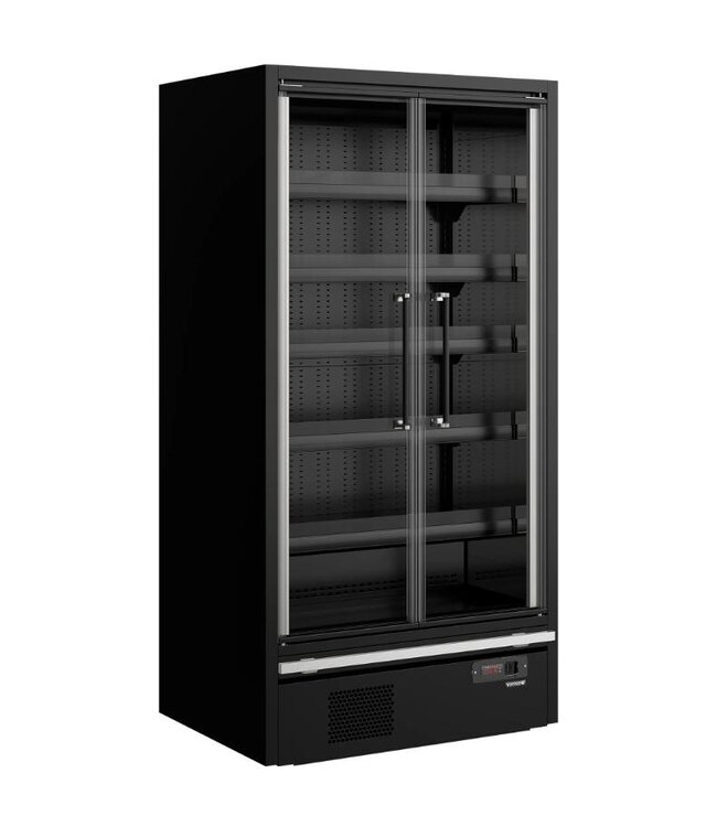 Ruime wandkoeling met twee heldere glazen deuren perfect voor supermarkten en winkels. Frameloos Galaxy+ design geschikt voor een doorlopende inrichting. Presenteer uw producten aantrekkelijk en overzichtelijk dankzij de verstelbare kantelbare planken. De zijwanden zijn spiegelend aan de binnenkant voor een doorlopende uitstraling. Compleet geleverd met etiket/prijsstrips en opstaande fronts van acryl. Met de zelfsluitende deuren en het geventileerde koelsysteem is dit een energiezuinige koeloplossing voor uw onderneming.
