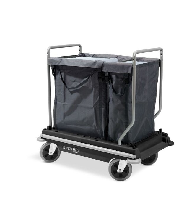 Vuil wasgoed-verzamelwagen NuBag gemaakt sterke stootbuffers voorzien van wielen voor eenvoudige verplaatsing. Stevig metalen frame met plaats voor verschillende soorten waszakken.