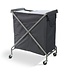 Vuil wasgoed-verzamelwagen gemaakt met stalen buizenframe, voorzien van 4 wielen. De waszak is eenvoudig los te halen en tevens compact op te bergen.