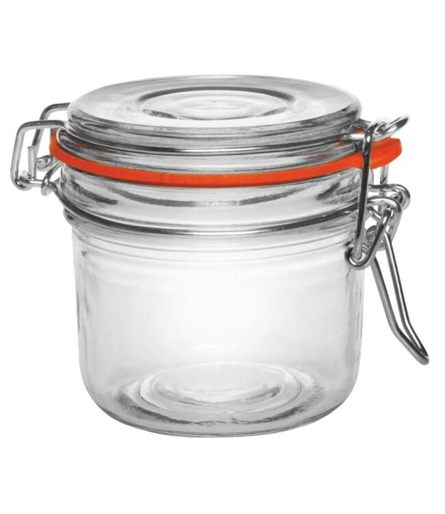 Glazen potje met een rubberen ring en beugel clip, voor het luchtdicht bewaren van allerlei producten. Weckpotjes met inhoud van 200 ml, een hoogte 8,5 cm. Wordt geleverd per 6 stuks. Vaatwasmachine bestendig.
