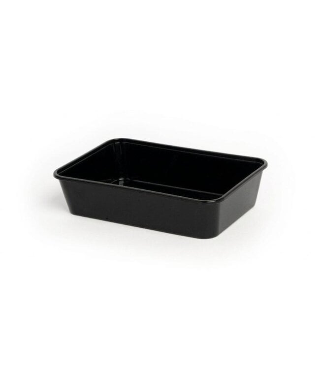 Geef uw gerechten op een professionele en moderne wijze mee met deze zwarte maaltijdbak in HQ-uitvoering. Dit bakje, met een inhoud van 500 ml, staat in de volksmond bekend als de "halve kilobak" en is de standaard voor het hygiënisch verpakken van kwaliteitsmaaltijden.